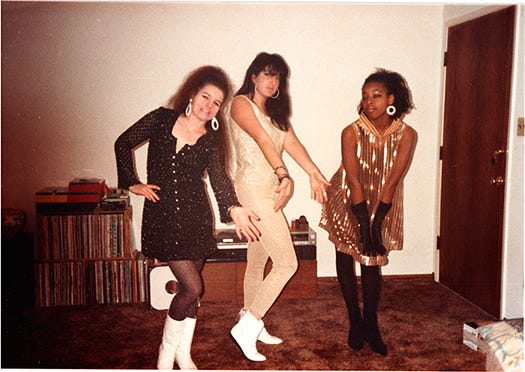 My besties Cybelle, Sonya, and Kim were also very much into the go-go dancing/punk combo, which we were convinced we had made up ourselves. While other kids thrashed in the mosh pit, my girlfriends and I were in front of the stage go-go dancing like hookers on speed.